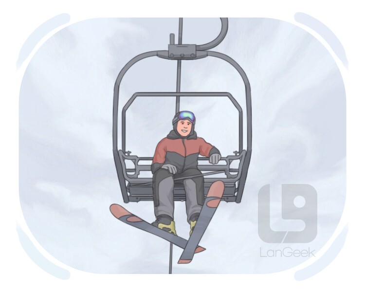 a machine at ski resorts that carries skiers and snowboarders uphill using chairs hanging from cables or hooks attached to a moving cable