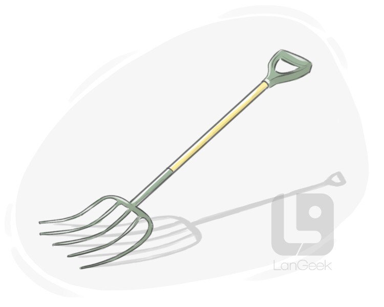 a gardening tool with a handle and three or four sharp points, used for digging or moving hay