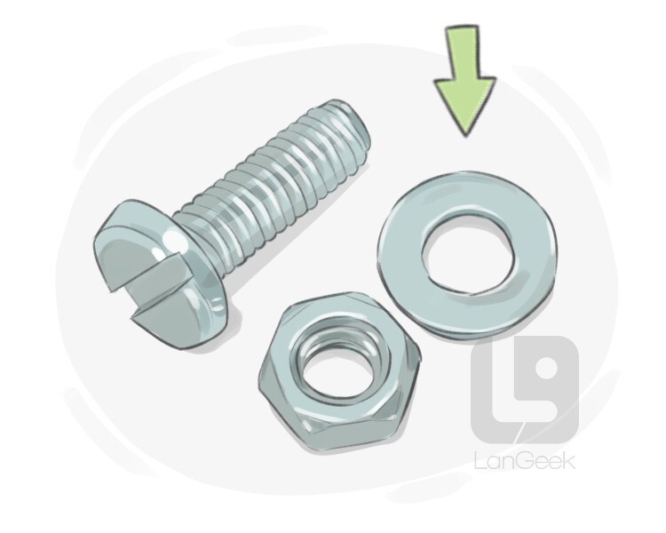 a flat piece of metal with a hole in the middle through which a bolt is put to secure or fasten objects together