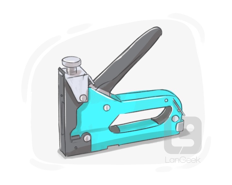 a metal tool that uses staples to fix paper or wood to other materials