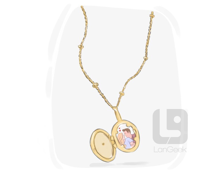 a small decorative case, usually made of valuable metal, which a memento can be kept inside and is worn around the neck on a chain or necklace