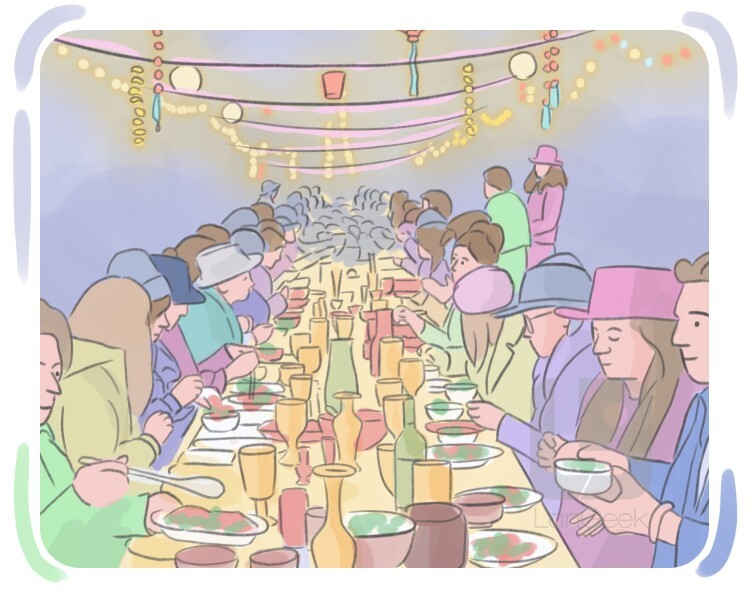 a meal with fine food, typically for many people, celebrating a special event