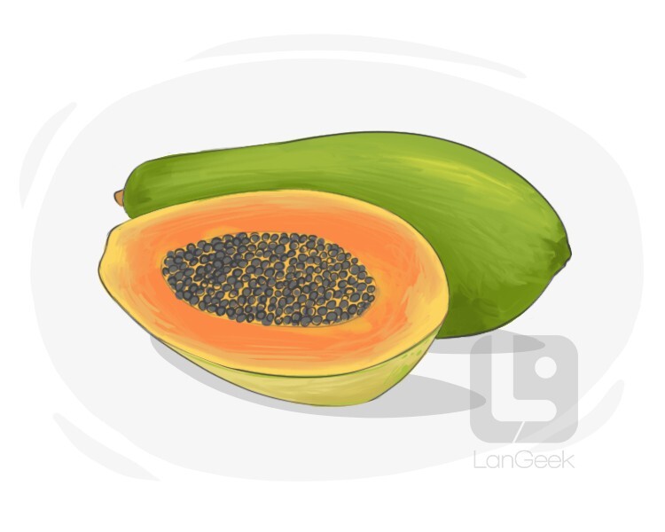 an oval tropical fruit with an orange-yellow flesh containing black seeds