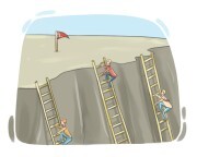 to constantly try to have or do things as well as others around one, often to show oneself just as successful as they are