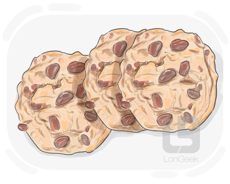 a small, crisp, sweet baked good, often containing ingredients like chocolate chips, nuts, or dried fruit