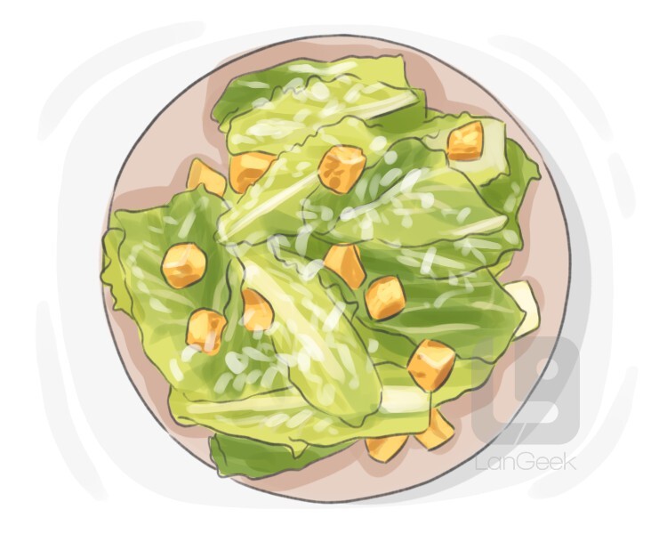 a cold dish made of romaine lettuce, croutons, and a creamy dressing, usually a mayonnaise-based one