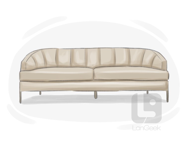 a traditional sofa with a high backrest that curves outward in the middle to create a hump, and usually has exposed wooden legs and rolled arms