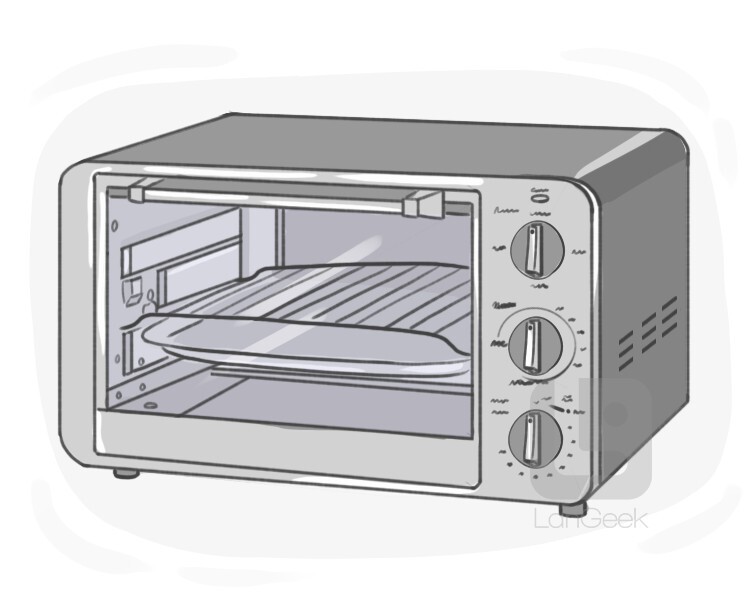 an appliance shaped like a box that is used for heating or cooking food by putting food on top or inside the appliance