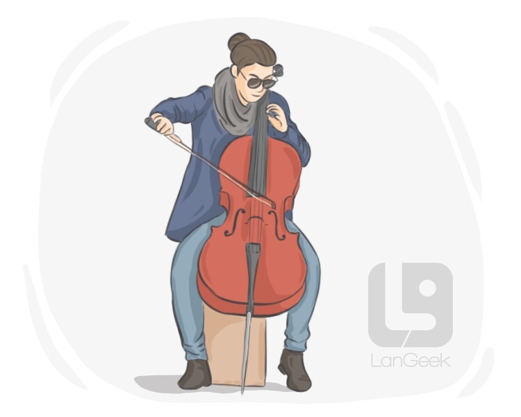 a large musical instrument of the violin family that is held upright and is played by pulling a bow across its strings