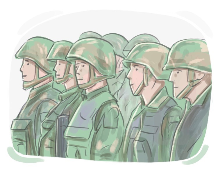 armed forces or soldiers, especially by large numbers