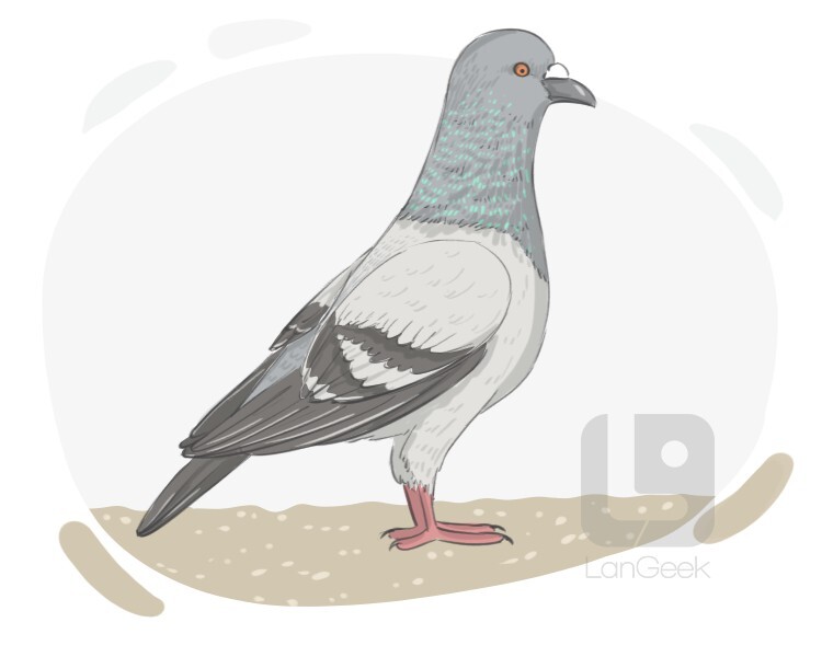 a domestic rock dove, also known as pigeon, trained to find its way home and is used for carrying messages