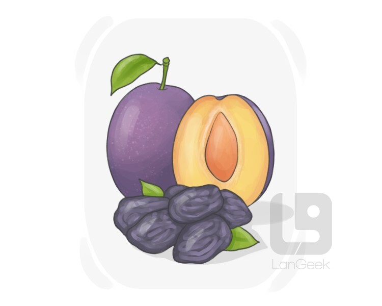 a small round fruit with juicy flesh and purple or yellow skin and a pit
