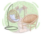 Dodali kolorowe poduszki do krzesła ogrodowego dla dodatkowego komfortu.