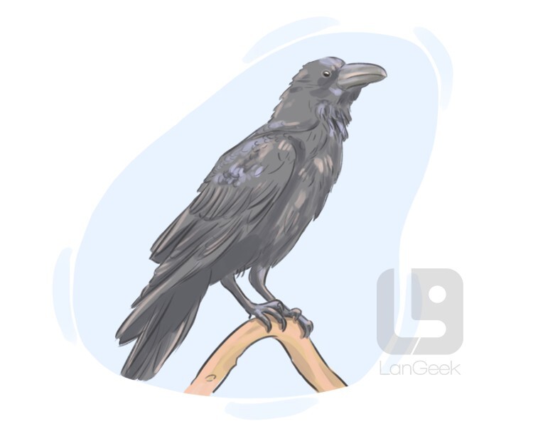 a large black bird belonging to the crow family with shiny feathers and a loud unpleasant call