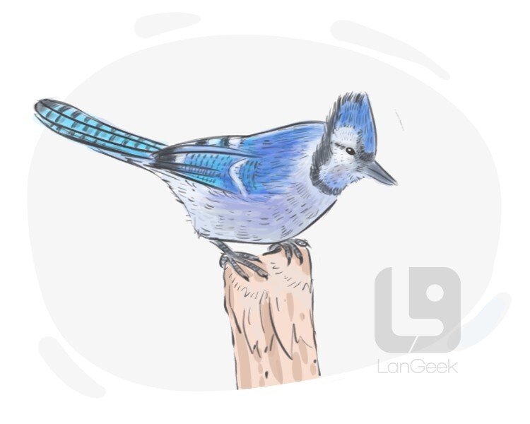 a North American songbird with a blue crest and blue feathers on the back
