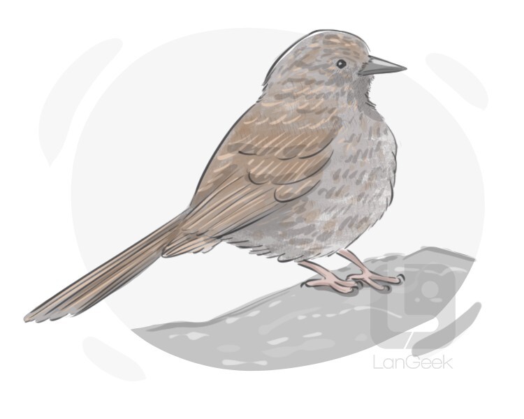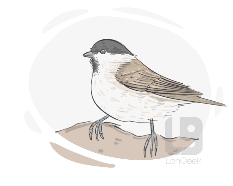 a small common songbird with grayish brown plumage that feeds on seeds or insects