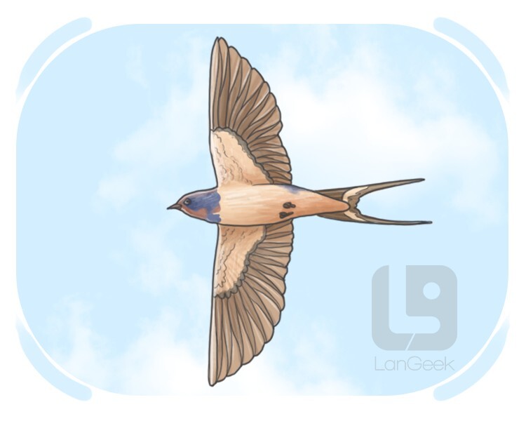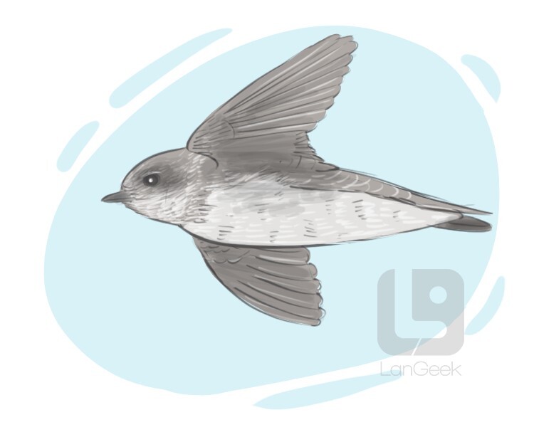 a small fast-flying bird with pointed wings and tail and a short bill, which feeds on insects