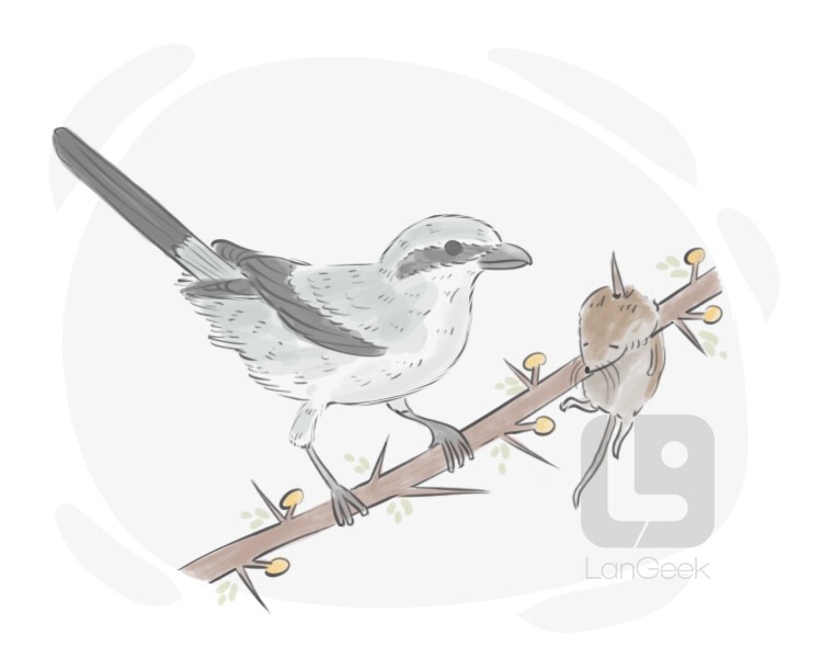 a carnivorous passerine with a strong beak and grayish brown plumage that impales its prey in thorns