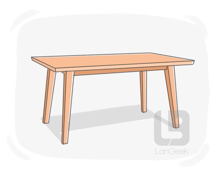 furniture with a usually flat surface on top of one or multiple legs that we can sit at or put things on