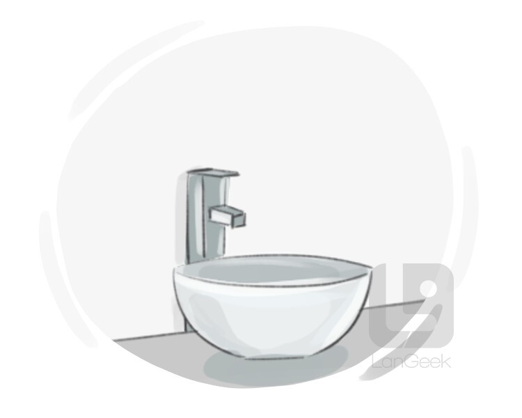 a container that a person can use to wash their hands and face, usually found in a bathroom, which has a faucet to turn on the water and a drain to let the water out