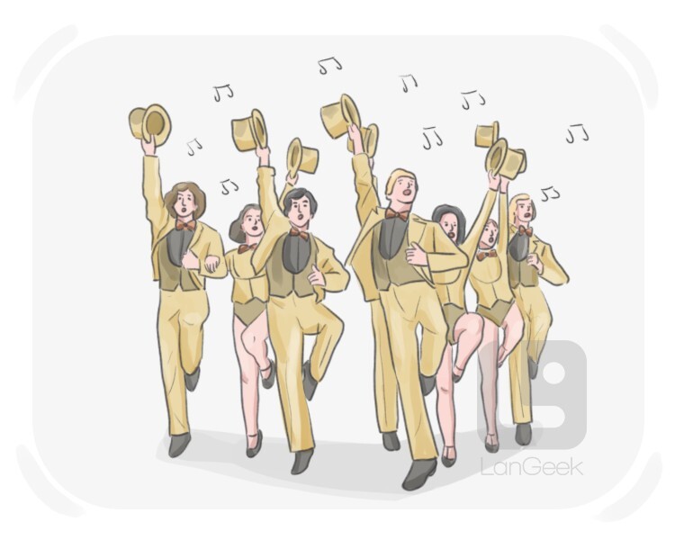 a group of dancers and singers who perform in a musical show, typically providing supporting or background roles and enhancing the main performance