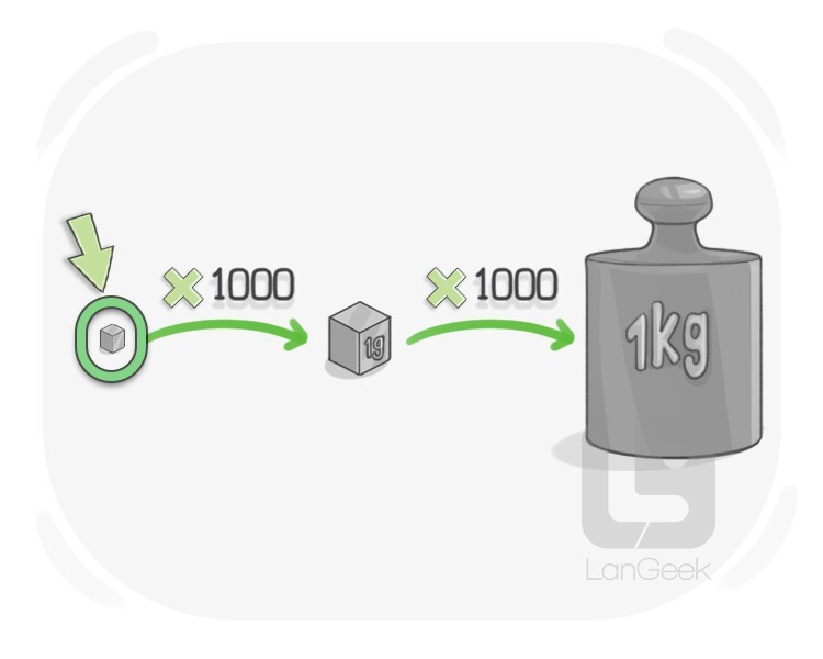 a unit of measuring weight equal to 2.20 pounds or 1000 grams