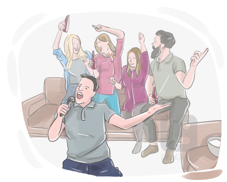 a form of entertainment in which people sing the words of popular songs while a machine plays only their music