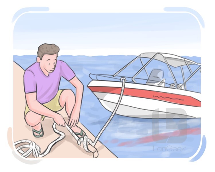 to moor a ship or boat to the bottom of the sea to stop it from moving away