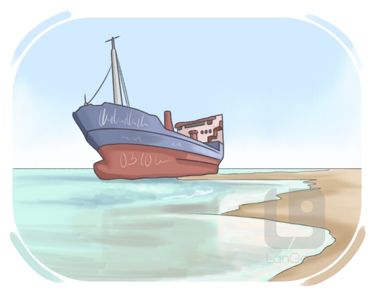(of a vessel) to come into contact with the seabed, usually in shallow water