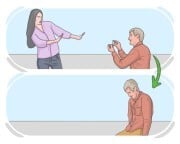Jej nagła i ostra krytyka zdawała się niepokoić go, powodując utratę opanowania.