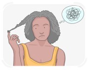 Zagłębiona w myślach, często bawi się swoim naszyjnikiem, nawyk, który wykształciła przez lata.