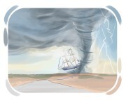 Kapitan rozkazał sternikowi przyspieszyć statek, aby uciec przed nadchodzącą burzą.