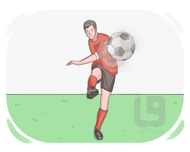 to strike something such as a ball with your foot, particularly in sports like soccer