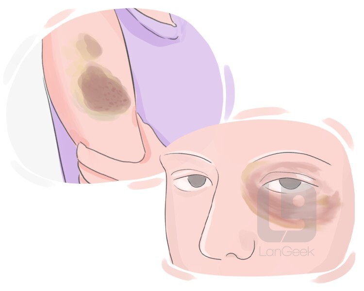 covered with bruise marks on one's skin as a result of having had an accident or been hit by someone or something