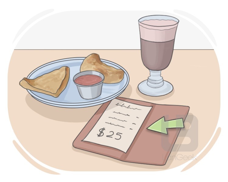 a small piece of paper showing the foods and drinks that we have ordered in a restaurant, cafe, etc. and the amount that we have to pay