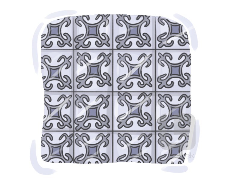a flat piece of baked clay or other material, mostly in the shape of a square, used for covering floors or walls