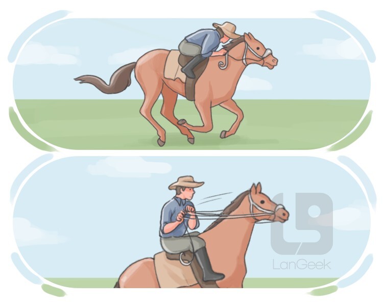 used in horseback riding to instruct a horse to stop or slow down