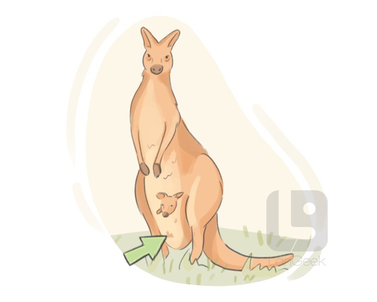a pocket-like structure that female marsupials, such as kangaroos, use to carry their young with them