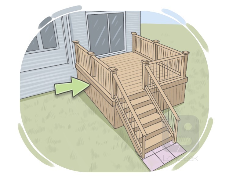 a platform above the ground level and on the outside wall of a building that we can get into from the upper floor