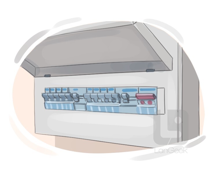 a distribution board or control panel that houses electrical circuit breakers, fuses, and other components to control and distribute electricity throughout a building or structure