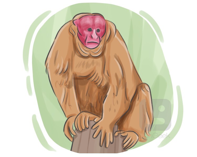 a type of primate species found in South America, recognized for their distinctive appearance characterized by a bald face, bright red facial skin, and a unique social structure