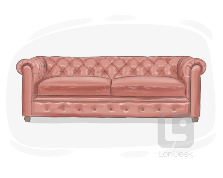 a type of sofa or armchair with deep button tufting, rolled arms, and often made of leather