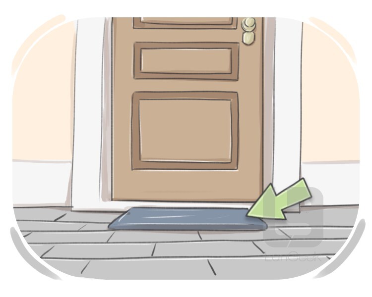 an object put on the ground in front of a door, used for cleaning the shoes on