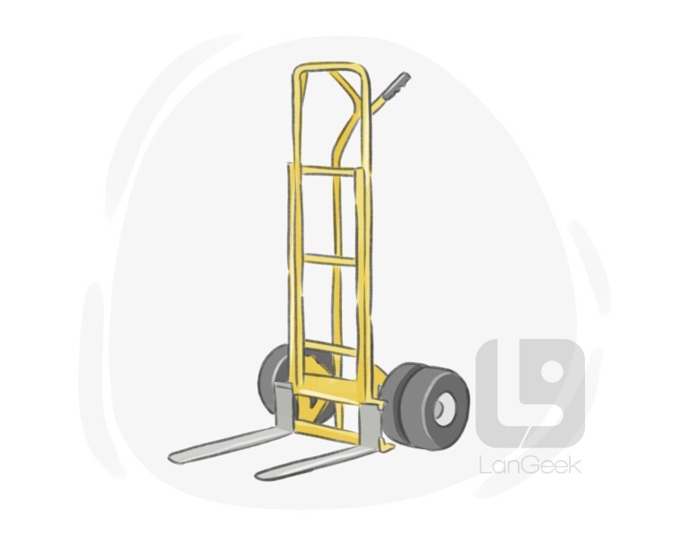 a manual or electric-powered device used for lifting and moving pallets or skids within warehouses or loading areas. It features forks that can be inserted under pallets to lift and transport them with ease