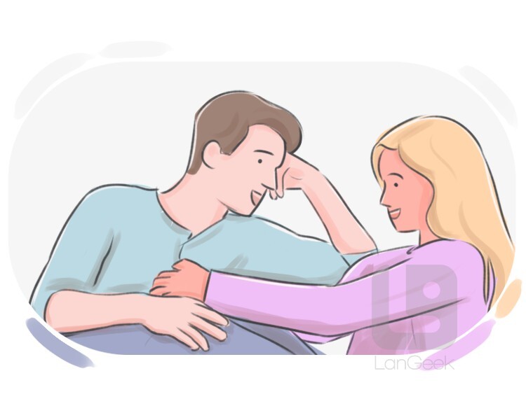 (of two people) to kiss and talk with one another in a very quiet and sentimental way