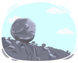 Мяч начал катиться вниз по холму после того, как его толкнули.
