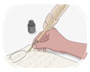 Он тщательно обводил контуры дизайна чернилами, прежде чем заполнить его цветом.