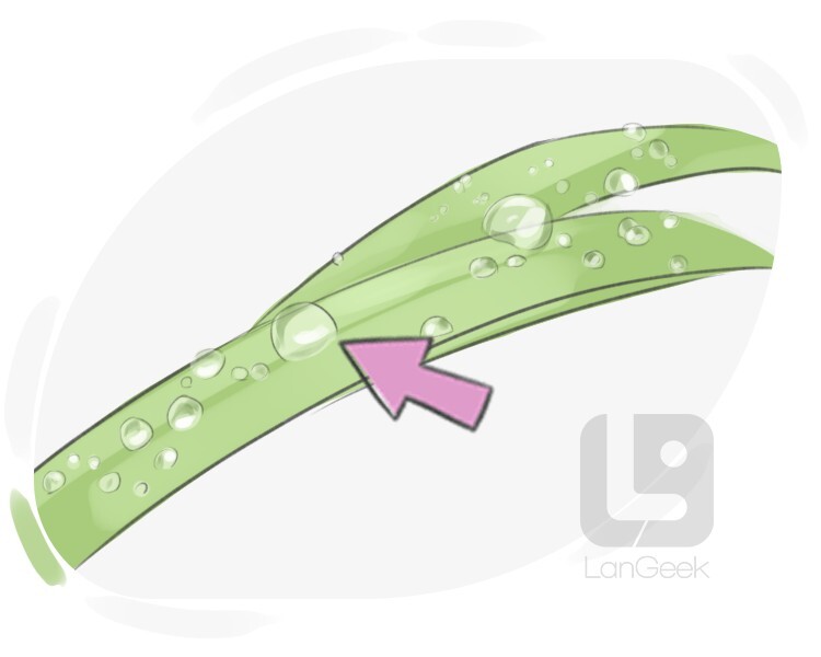 the tiny water drops that form on cool surfaces during the night, caused by condensation