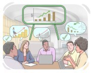 Генеральный директор объявляет квартальные результаты компании во время заседания совета директоров.