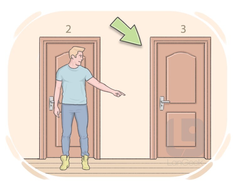 in or to the room or building that is directly beside or nearby